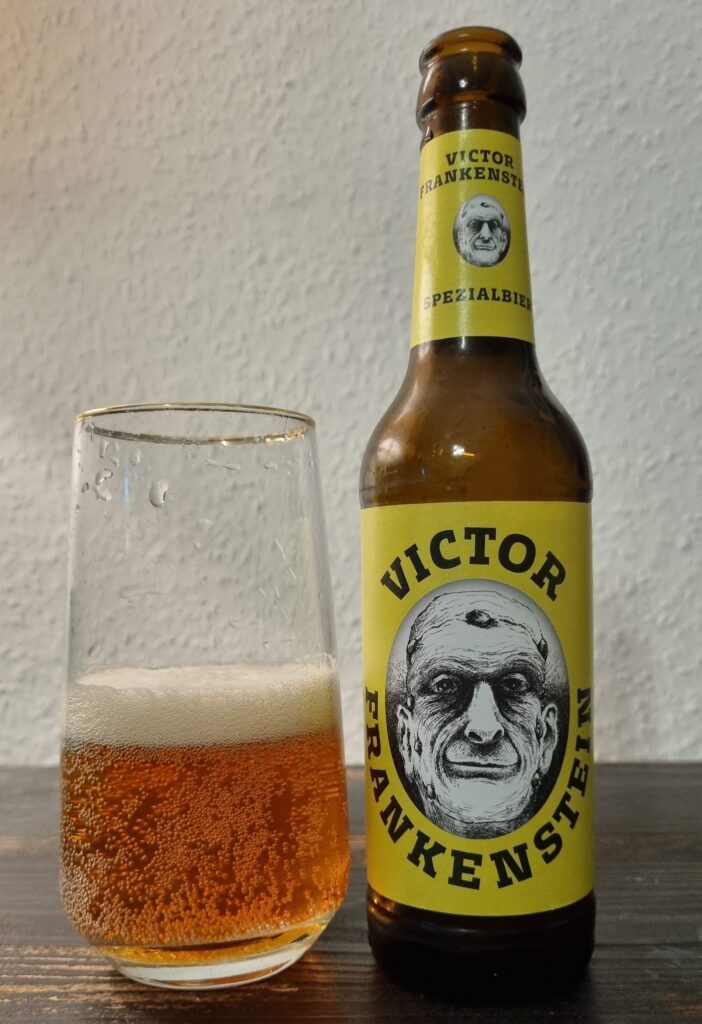 Es ist eine weitverbreitete Fehlnannahme, dass es sich bei „Frankenstein“ um das Monster handelt – tatsächlich ist das der Name des ehrgeizigen Wissenschaftlers, der Gott spielen wollte, und mit Vornamen Viktor hieß. Sein Geschöpf hat er aber dann tatsächlich in Ingolstadt produziert. Es lächelt uns vom Etikett der Flasche entgegen. Bei der Herstellung dieses speziellen Bieres wurden Spalter Select aus der Hallertau und Wiener Malz verwendet. Hinzu kommt eine Portion Hallertauer Blanc im Rahmen einer späteren Kalthopfung.
