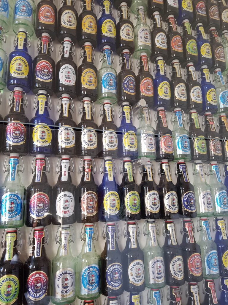 Bei ihrer „vergessenen Sorte“ ist die Flensburger Brauerei gleich in mehrfacher Hinsicht revolutionär. Tatsächlich befindet sich im Hefe-Tresor unterhalb der Munketöft nicht nur eine untergärige Hefe, wie sie bei allen bekannten Sorten der Brauerei eingesetzt wird. sondern auch ein obergäriger Hefestamm. Denn in Flensburg wird tatsächich auch ein Weizenbier gebraut. Das war sogar auch einst kurzzeitig auf dem Markt, wurde aber überhaupt nicht vom deutschen Verbraucher angenommen. Ein Weizen in 0,33 l und mit Bügelverschluss? Das war den Leuten dann doch zu wild. Dennoch wird Weizen hier fröhlich produziert, allerdings auschließlich für den Export. Im ostasiatischen Raum soll das Produkt ein großer Erfolg sein. Angeblich gibt es sogar Orte in China, wo Oktoberfeste unter dem Klang aufploppender Flensbuddeln gefeiert werden.